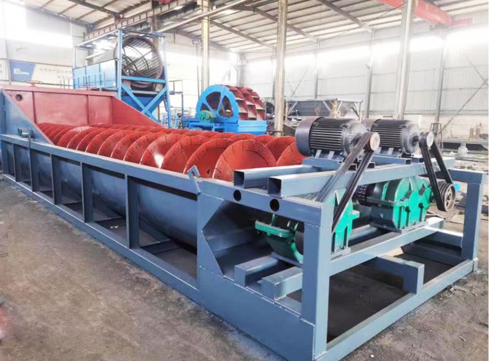 螺旋洗砂機(jī)是洗砂機(jī)的一種,主要通過設(shè)備內(nèi)的螺旋裝置對(duì)砂石料進(jìn)行攪拌,從而使砂石料中的泥土與水進(jìn)行混合,從設(shè)備上的流口排出,而砂石料則在螺旋裝置的作用下被逐步篩選,從頂端的出料口排出,從而實(shí)現(xiàn)了砂石料的清洗篩選效果。
