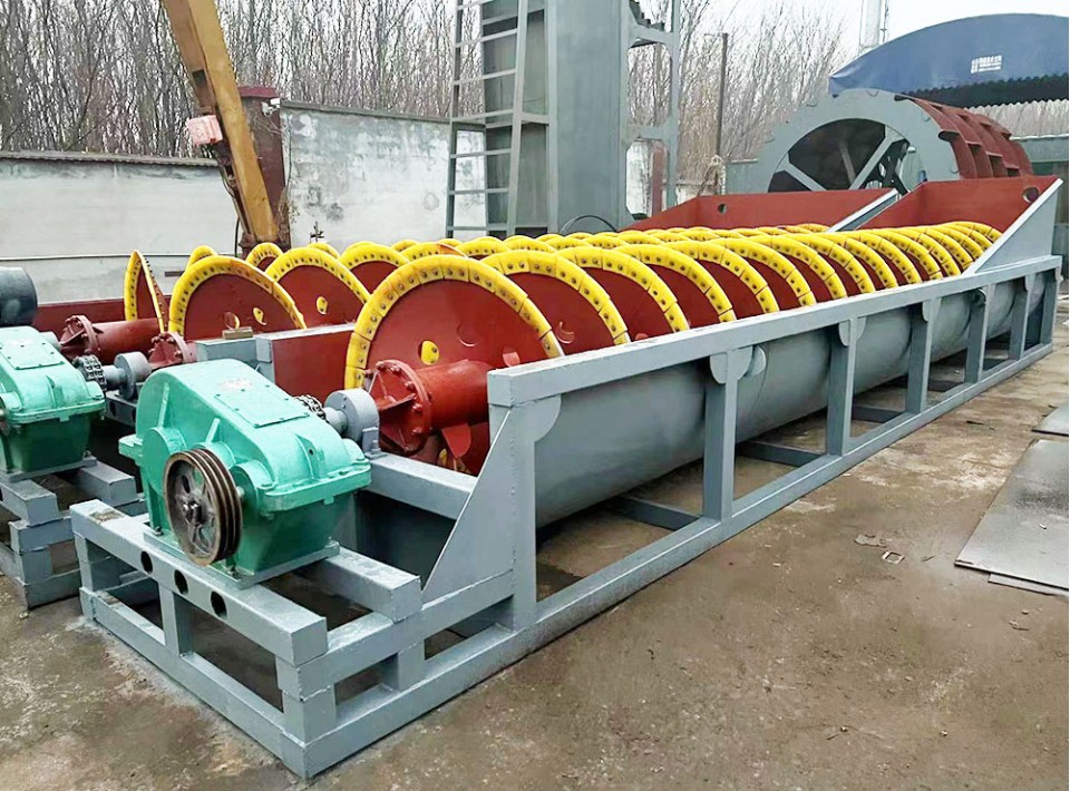 螺旋洗砂機(jī)是洗砂機(jī)的一種,主要通過設(shè)備內(nèi)的螺旋裝置對(duì)砂石料進(jìn)行攪拌,從而使砂石料中的泥土與水進(jìn)行混合,從設(shè)備上的流口排出,而砂石料則在螺旋裝置的作用下被逐步篩選,從頂端的出料口排出,從而實(shí)現(xiàn)了砂石料的清洗篩選效果。
