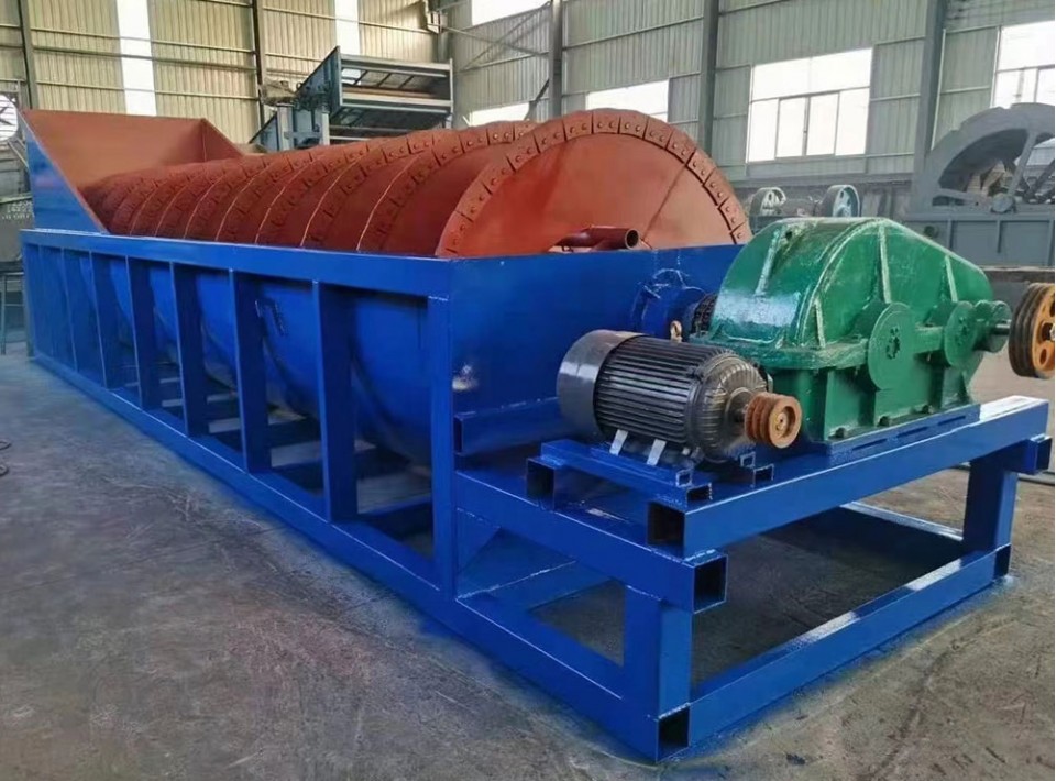 螺旋洗砂機是洗砂機的一種,主要通過設(shè)備內(nèi)的螺旋裝置對砂石料進行攪拌,從而使砂石料中的泥土與水進行混合,從設(shè)備上的流口排出,而砂石料則在螺旋裝置的作用下被逐步篩選,從頂端的出料口排出,從而實現(xiàn)了砂石料的清洗篩選效果。
